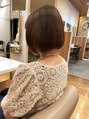 ラインがキレイなボブヘア。顎ラインでスッキリ見える長さです。ストンと落ちて丸みが出るように重めにカットしています。スキばさみを使わずに髪質・骨格に合わせてカットするのでまとまりやお手入れの楽さが変わります。ぜひお任せください^^