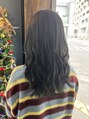 暗髪にしたい方におすすめのカラーです。濃いめのネイビーブルーとグレーを混ぜて、暗い中に透明感が出るようにしました^ ^ストレートとの相性はもちろん、ウェーブスタイルにしても可愛いです。黒染めは入っていないので、褪色はします。