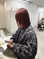 ブリーチ無し/ボルドーカラー/切りっぱなしボブ