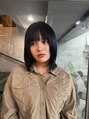 ワイドバングにボブレイヤースタイル重めのバングとレイヤーの軽やかさのアンバランスさがよりシンプルだけどオシャレに見えるスタイルに♪カラーはブルーブラックで色落ちもできるだけ赤みを抑えて色落ち過程も綺麗なカラーになる様にしてます!
