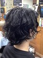 センターパートスパイラルパーマミデイアムスタイル(床屋)