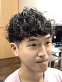 スパイキーアフロ チャコールグレー ショートセンターパート サーフフェザー プードルパーマ