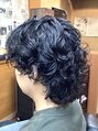 スパイキーアフロ チャコールグレー ショートセンターパート サーフフェザー プードルパーマ