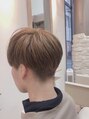 周りはスッキリ刈り上げて、トップ長めのマッシュスタイルです♪カラーがブリーチ無しのハイトーンなので、スタイルは少し重めでバランスを取ってみました♪
