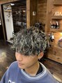 カット×スパイラルパーマ×メッシュカラー