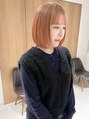 "久保田"オレンジピンクベージュブリーチカラー切りっぱなしボブ