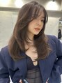 韓国ヘアレイヤーロンググレーベージュ前髪パーマ黒髪