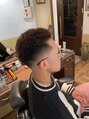 スキンフェードにハードパーマ。このスタイルを希望の方は西村を指名後、クーポンを選んで下さい。刈り上げの高さや長さもご相談承ります。