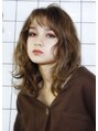 ショートバングに波巻きウェーブが今っぽいニュアンスのミディースタイル!顔周りにかかる毛で小顔効果になります^^ハイライトデザインもお洒落に決まります☆気に入ったスタイルは【ブックマーク】がオススメ☆指名料無いのでシバタまでご相談下さい☆