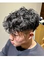 スパイラルパーマ。周りはスッキリ刈り上げて。薬剤は毛先のダメージ具合で使い分け。