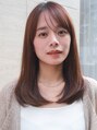 小顔ストレートレイヤー/シースルーバング/暗めカラー艶ベージュ