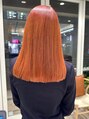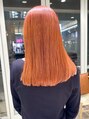 セミロング 切りっぱなし オレンジ ブリーチ ハイトーン
