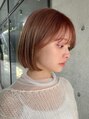 切りっぱなしタッセルボブワンカール内巻きピンクベージュ