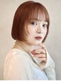 コーラルオレンジ 顔周りレイヤー ラウンドバング 暗めカラー