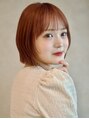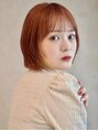 コーラルオレンジ 暗めカラー ラウンドバング 切りっぱなし