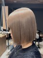 ミルクティーグレージュと切りっぱなしボブの相性がバッチリ◎綺麗な透明感と美しいカットラインでお上品な雰囲気を演出♪こちらの色はブリーチ1回♪※黒染め、暗染め履歴のある方は難しい場合もあります。幹細胞トリートメントでダメージレスに!