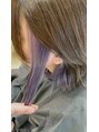 透明感のあるアッシュグレーに、ちらっと覗くインナーのラベンダーがアクセント。派手すぎず上品に楽しめる大人可愛いスタイルです。