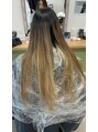 ロングヘアに細かいハイライトを入れたグレージュデザイン。透明感と立体感を出しながら重く見えない仕上がりに。髪質改善カラーとトリートメントでツヤとまとまりをプラス。marrb使用でダメージを抑えています。