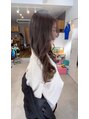 シアグレージュで赤みを抑えた透明感カラー。アールシェープカットで自然な動きと軽さをプラス。2ステップトリートメントで艶とまとまりをキープ。