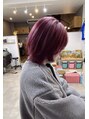 ブリーチ履歴を活かした深みのあるチェリーレッド。ツヤ感と透明感を両立し、派手すぎない大人可愛い仕上がりに。外ハネベースで軽さと動きを出し、日常でも扱いやすいスタイルです。