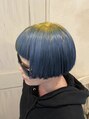 イメチェン/コンパクトボブ+ブリーチ+ターコイズ+イエロールーツUP
