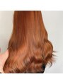 ブリーチ1回で作るオレンジカラー☆一回ブリーチで残ったオレンジ味を活かして艶感のある仕上がりに☆暖色カラーはブリーチによるダメージを抑えながら綺麗な色味を出すことが出来るので髪を綺麗に見せたい方、1回ブリーチで明るい色にしたい方におすすめ♪