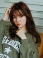 ふわっと波巻きロングスタイルです。全体的に重めのシルエットにし、巻いた時のふんわり感を重視しています。全体が重めのシルエットに対し、前髪を薄めに作ることで抜け感ができて、重くなり過ぎないスタイルに仕上げました。【いわき】