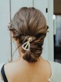 全体にゆるくカールをつけたあとにルーズにほぐしをいれたニュアンススタイルです。決めすぎない、カジュアルなヘアセットなのでどんな服装にも合います。結び目を高めにつくるとガーリーになりすぎてしまうので低めがおすすめです。【いわき】