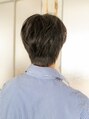 襟足を短く刈り上げずナチュラルさを残したスタイル。前髪はサイドに自然に流れるようなカット。バックの部分は自然にボリュームを出し絶壁をカバー。【いわき】