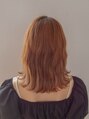 長さは鎖骨あたりでカットした後ろが長めのミディアムスタイルになります。表面と顔まわりにレイヤーを入れることによって、動きのあるスタイルに。オレンジブラウンのカラーで少し個性的なスタイルになっています。【いわき】