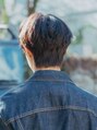 緩めのワンカールで流れやすくスタイリングできるようにゆるくワンカールになるようにかけたパーマスタイルになります。ツーブロックを入れサイドのふくらみをとるとサイドはスッキリとした印象になります。後ろは刈り上げはしてないです。