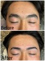 眉毛パーマのビフォーアフターです。眉毛は顔の印象の8割を占めます。眉を整えるだけで整形級に顔の印象が変わります。継続する場合は、約2ヶ月に一度の定期的なメンテナンスも必要です◎