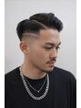 分け目のところと、刈り上げの部分にラインを施したスタイルです。分け目にラインを入れることによって、セット時に分ける手間がなくなります◎オプションにて、+500円にて可能です!