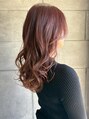 レッドカラー 暖色カラー ブリーチカラー ハイトーン 丸みボブ