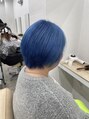 ペールトーンブルー/ハイトーンカラーショートボブ/ケアブリーチ