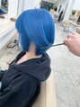 ハイトーンビビットブルーカラー/くびれボブ/ケアブリーチ名古屋