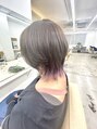 インナーカラーをパープルにしたボブレイヤースタイルインナーカラーのみを、しっかりとブリーチして明るくすることで紫をしっかり感じる色カットは襟足を程よく残して頭の丸みが綺麗に出るようにレイヤーの入ったボブに