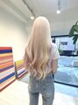 ハイトーンのホワイトカラーにインナーにピンクバイオレットを入れたデザインカラーしっかり明るくすることで残留しないピンクをいれることが出来るので褪色後は綺麗なホワイトブロンドに戻りますホワイトブロンドを続けたい方にもおすすめ