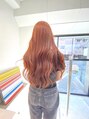 ブリーチ無しのダブルカラーでつくるアプリコットオレンジカラーオレンジはブリーチ無しでもベースを明るくできればしっかり色味が見えるカラーですブリーチをしていないのでダメージも感じづらくオススメです