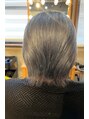 全体にシルエットを調整しました。メリハリが出たことで立体感のあるスタイルに仕上がっています。カラーは、ブリーチでベースを整えたうえで、透明感のあるシルバー系カラーを重ね自然に深みが出るようにきれいなシルバーに仕上げました。