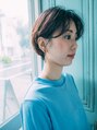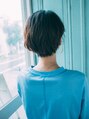 長めの前髪をセンターに分けた大人スタイル!カラーリングもダークトーンでツヤを出し、キレイに見せてくれます。ひし形シルエットで、スッキリさせたコンパクトショートです!美シルエットで、頭の形もカバーできます。〔上大岡駅〕