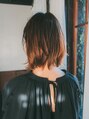今回のスタイルは、切りっぱなしボブに表面にだけ軽くレイヤーを入れて他とは違ったこなれ感を出しています。前髪は、ぱっつんではなく流すことで大人っぽい雰囲気にして少しカッコ良くなるイメージをつけています。〔上大岡駅〕