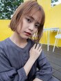 明るめのショートボブスタイル 顎のラインの前下がりボブなので、小 顔効果になります。 また顔まわりの毛を軽くすることによって、より動きがでて とても可愛くなります!前髪は薄めで少し長めにすることで今っぽいスタイルになります。