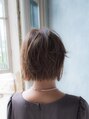 顔まわりは耳にかけすっきりとした大人っぽい印象のミニボブ!前髪をかき上げて髪の表面に動きをつけることとベージュ系のカラーで抜け感がでてやわらかい雰囲気に仕上がります。大人っぽい印象にも可愛らしい印象にもなるのでとてもおすすめスタイルです