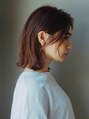 センターパートでストレートな質感が縦ラインを強調しているミディアムヘア。レイヤーを入れることで動きのあるスタイルに。カラーは暗すぎず、明るすぎずで落ち着いた大人女性を演出。丸顔の方だとより小 顔効果が期待できるスタイル。[上大岡/上大岡駅]