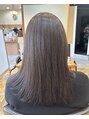 セミロングヘアのメテオカラー。メテオカラーはカラーしながらうねりやダメージを改善し、滑らかな髪、ツヤツヤな髪を実現します。縮毛矯正後のメンテナンスメニューに最適です。