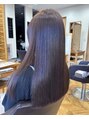 ロングヘアのメテオカラー。メテオカラーはカラーしながらうねりやダメージを改善し、滑らかな髪、ツヤツヤな髪を実現します。縮毛矯正後のメンテナンスメニューに最適です。