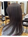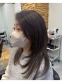 セミロングヘアのメテオカラー。メテオカラーはカラーしながらうねりやダメージを改善し、滑らかな髪、ツヤツヤな髪を実現します。縮毛矯正後のメンテナンスメニューに最適です。