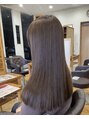 セミロングヘアのメテオカラー。メテオカラーはカラーしながらうねりやダメージを改善し、滑らかな髪、ツヤツヤな髪を実現します。縮毛矯正後のメンテナンスメニューに最適です。