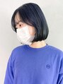 ネイビーブルーミニボブ_アースカラーくびれヘア_ba377371
